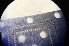 We can drill holes in material as thin as .0001" thick, and as small as .010" diameter.